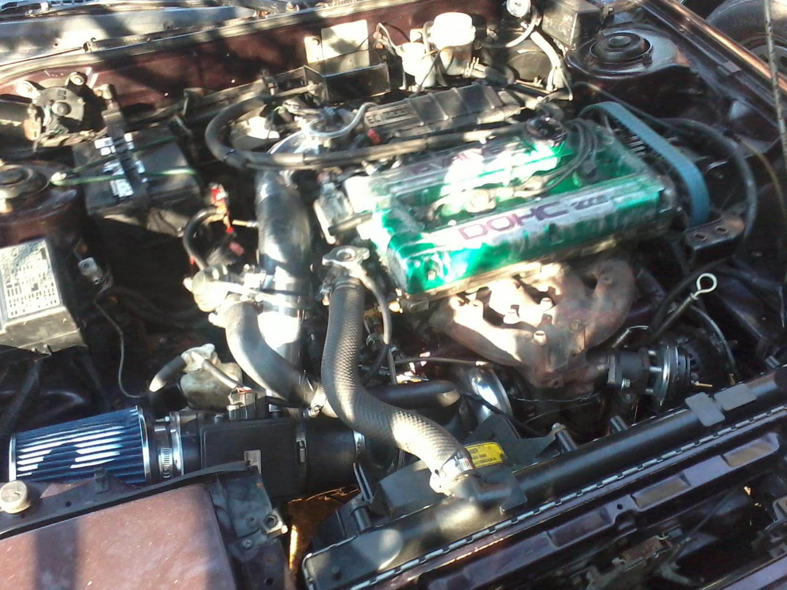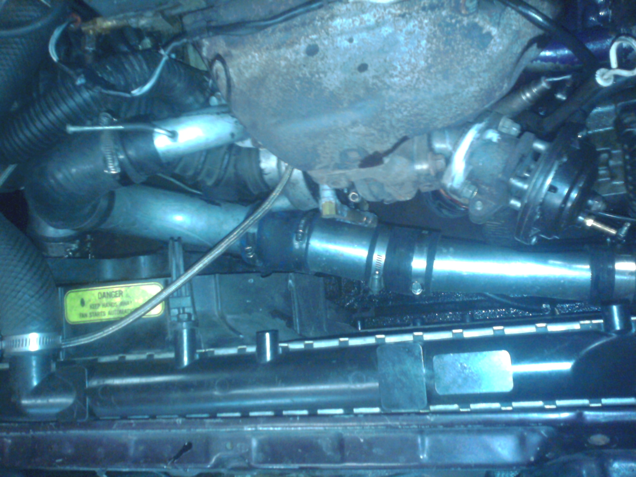 i made some progress tucking wires and cleaning up the engine bay got the turbo back on and it dont smoke so thats good i changed the oil feed line to the head changed the oil drain to high temp silicone hose all i got till i can get the braided line got my cooling fan back in pulled the ac out