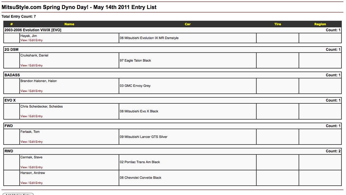 If you want to dyno, follow the link above and sign up. Do whatever you can to make sure your car is in tip-top shape before showing up, heck, make sure its ready to rock a week before the event so when the day comes we can just hang out and have fun!