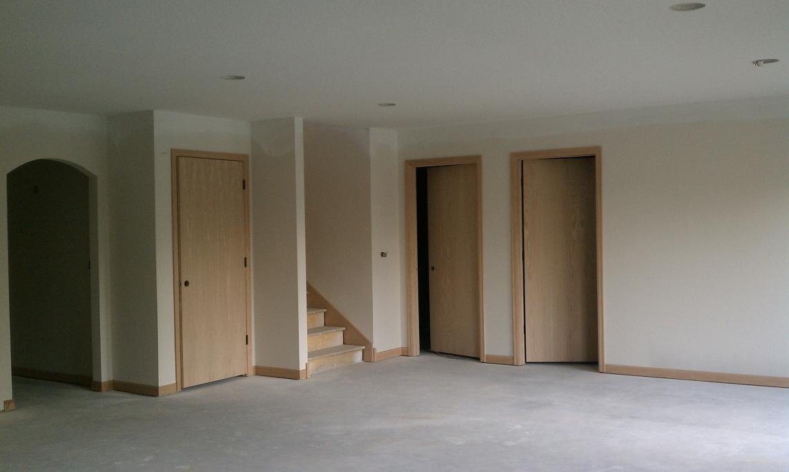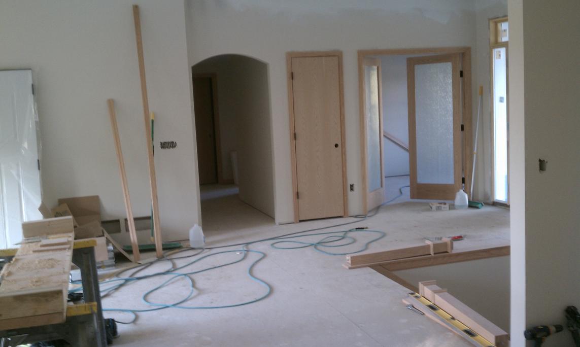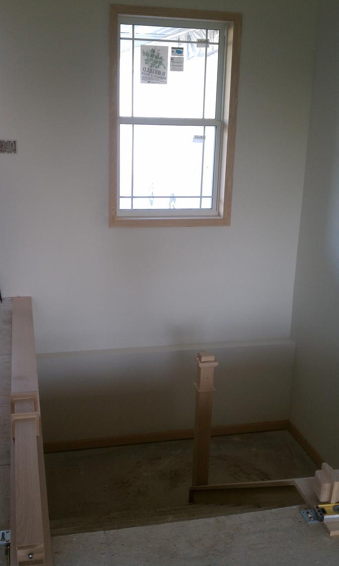 Update for this week. The garage floor and front porch cement have been poured. Ceilings have been painted, initial coat of paint on the walls as well. The has all the doors hung, and is 95% done with the trim. The main level has about 80% of the doors hung, and about 30% of the trim installed. I'm assuming they'll finish up the trim work tomorrow, as well as take delivery of all the cabinets