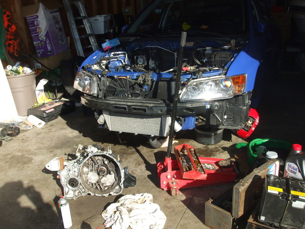 Got a lot done today! motor and tranny are in the car and going to pick up the remainder of the gaskets from mitsu tomorrow. Still a lot to do but the hard part it over.