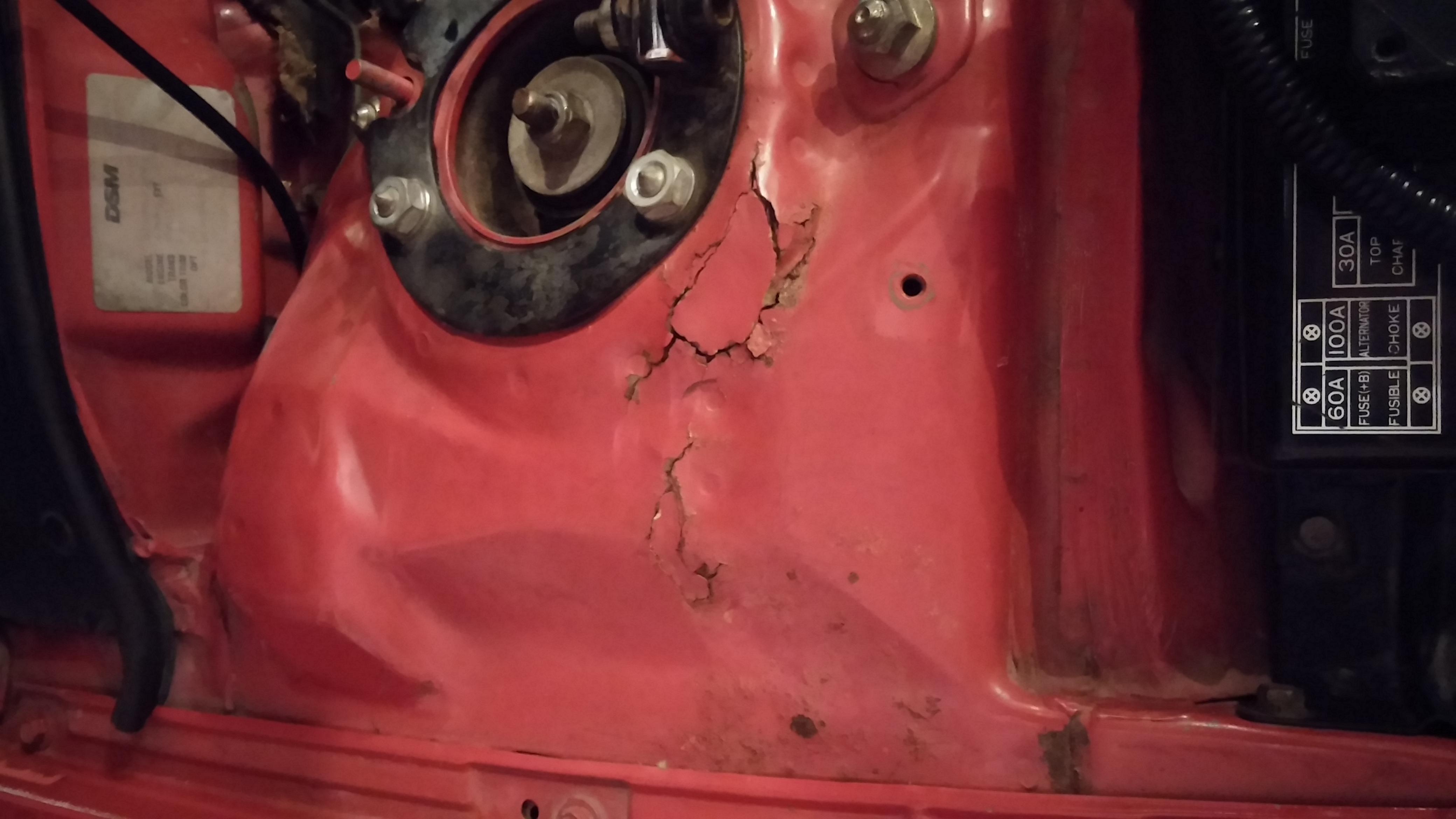 So after getting this 2g and looking at the bay and seeing the paint coming off and the padding on the fire wall that is ugly i decided to pull the motor and repaint and fix the strut tower since i picked up my daily driver this past saturday so i can finally get started on it.