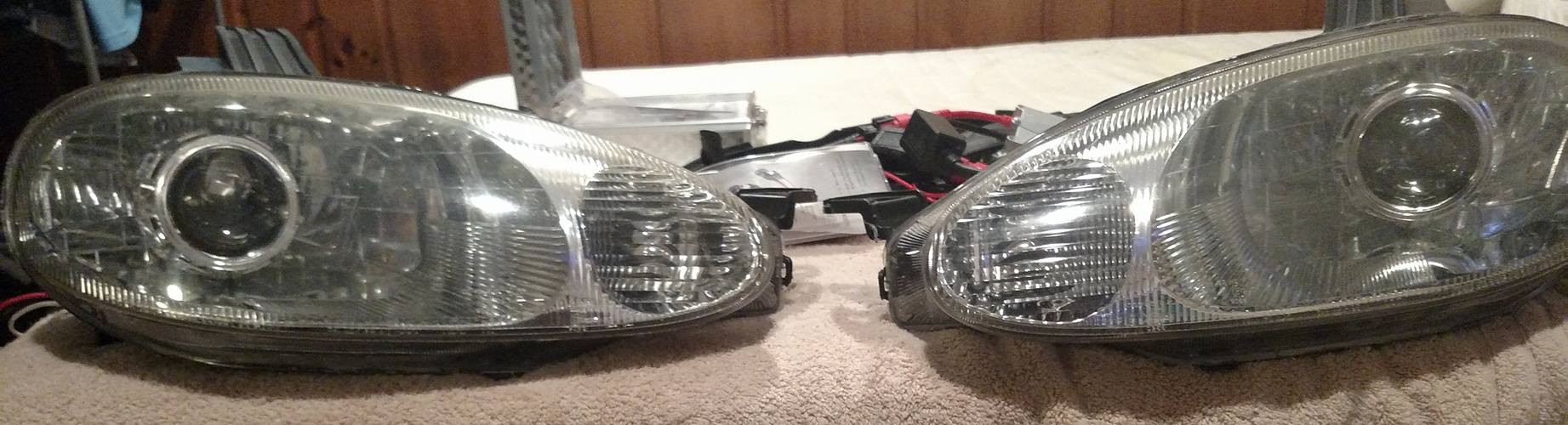 Ordered some cosmetic parts today (HID retrofit setup, I hate these stock lights so time to drop in some HID's Going with mini H1 housings) and did some cosmetic work tonight (de-chromed ala plastic dip). Doing it on the cheap as the project is still low buck and well, even a low buck HID setup will be better than these crappy lights.