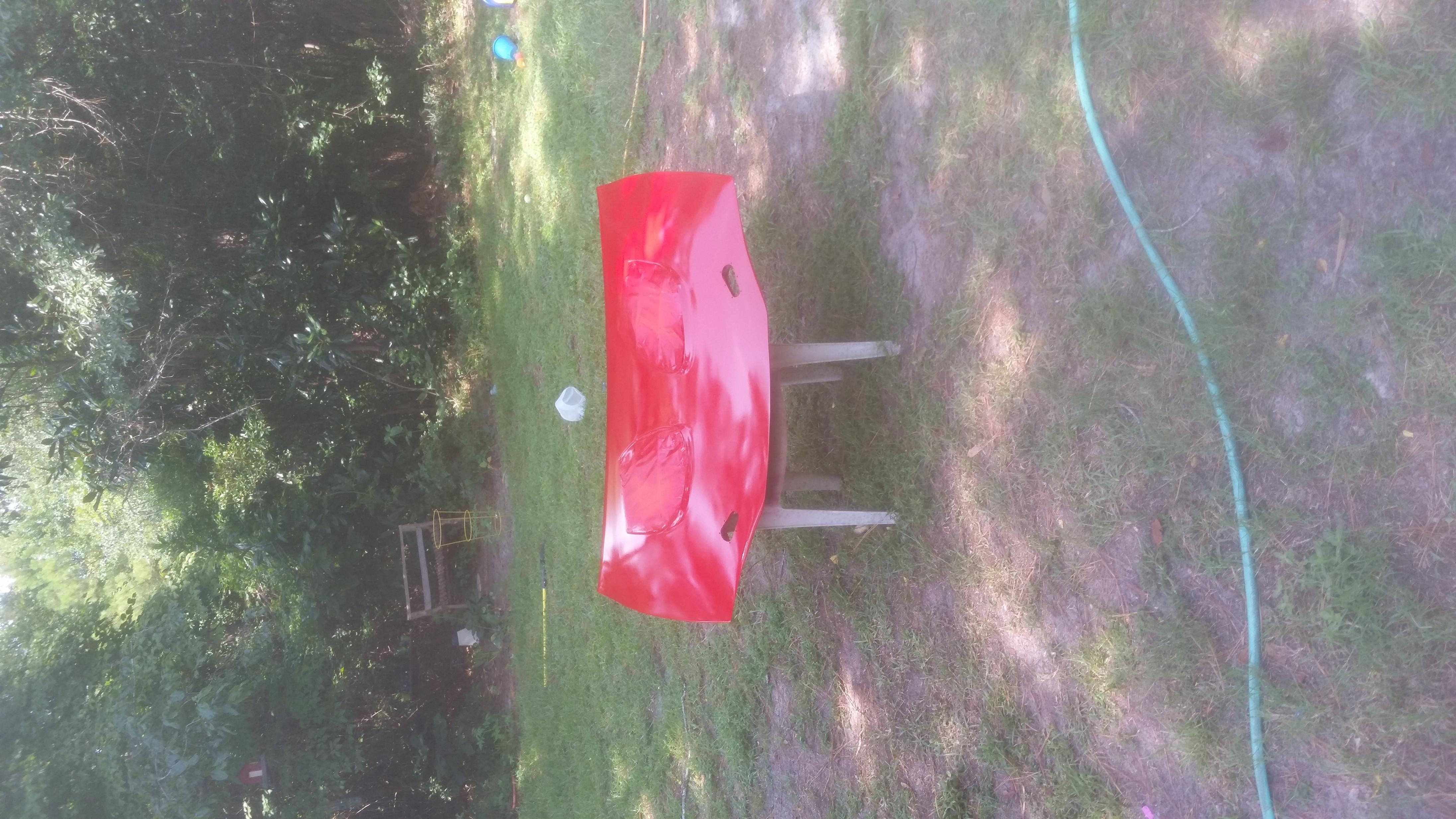 Got some painting done on the new hood. With help from my kids swing set.