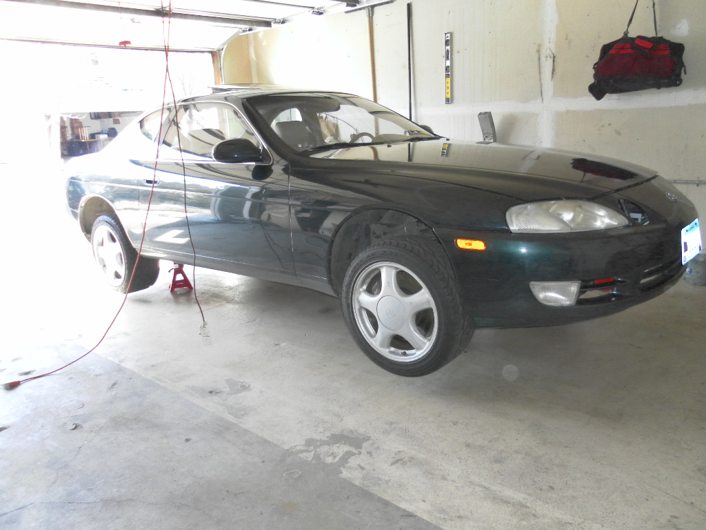 I parked her in the driveway. Cleaned out the garage where she'll be parked for the next couple months. Jacked her up and gave her a good underbody cleaning/degreasing before starting work.