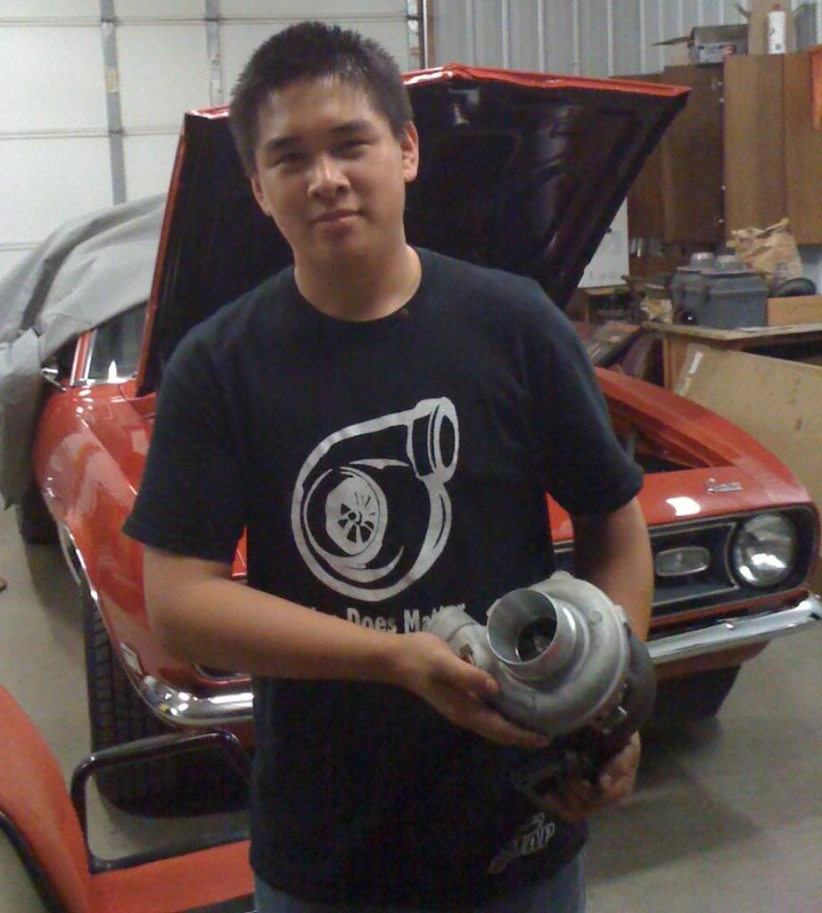 There's me on Saturday with an AGP turbo in my hands. My friend's dad's 1968 Chevrolet Camaro is in the background.