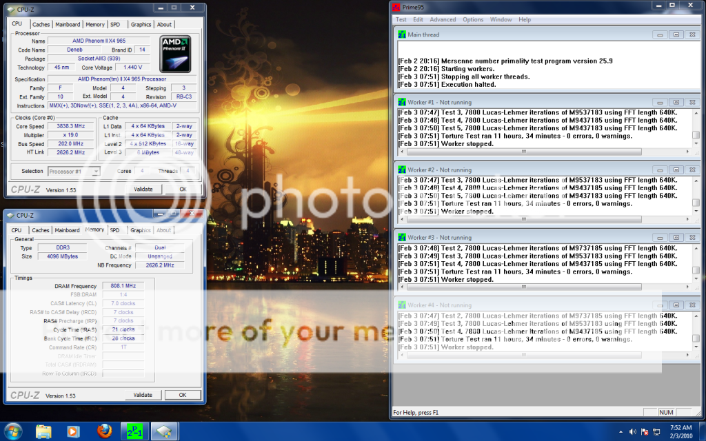 My system as passed many hours of Prime 95 and 15 passes of ITB test. My temps are good for all air cooling. CPU idles at 31c and even ITB did not break 60c, prime 95 hovers around 48c. My graphics cards idle at 39c/42c and full load at 52c/55c my bottom card runs a little hotter then the top card.