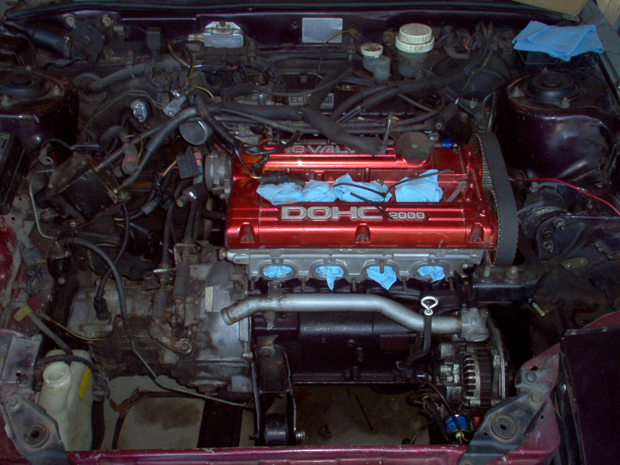 Hey heres a few pics of the engine bay of my 90 eagle talon tsi