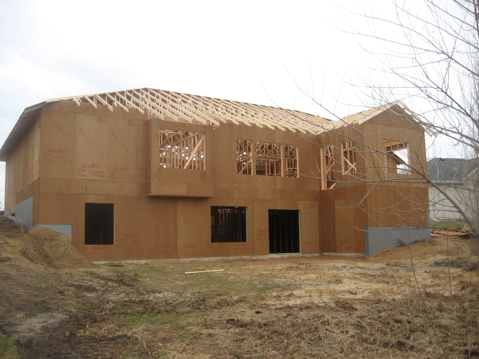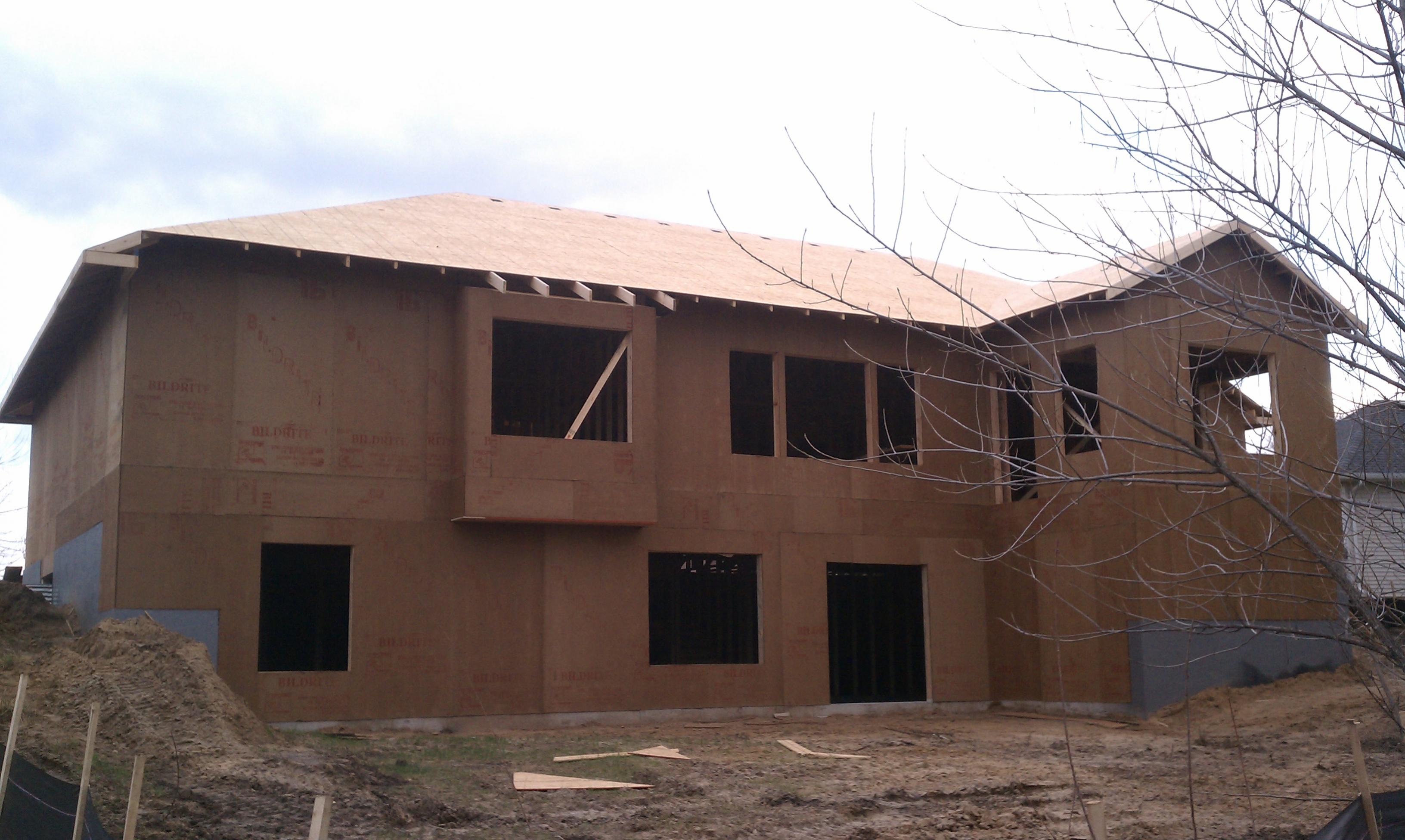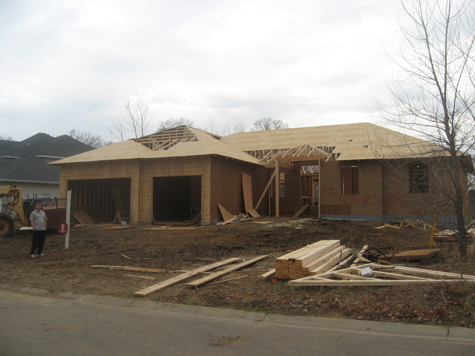 They are making some amazing progress. Every day we swing by and are amazed! The entire main level is pretty much framed. The roof is framed. It's starting to look like a house!