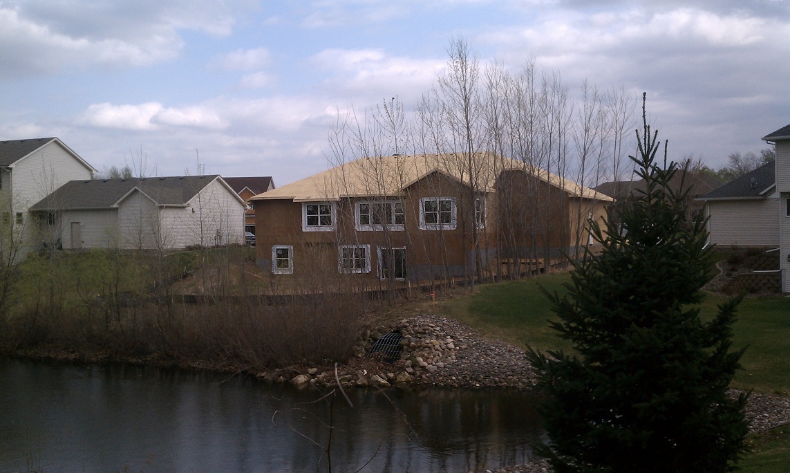 Roof is on. Upper level is fully framed (archways installed as well). Windows and doors are installed. We were told they will be pouring the basement floor tomorrow, and framing the basement Friday. Still amazes me how fast they work.
