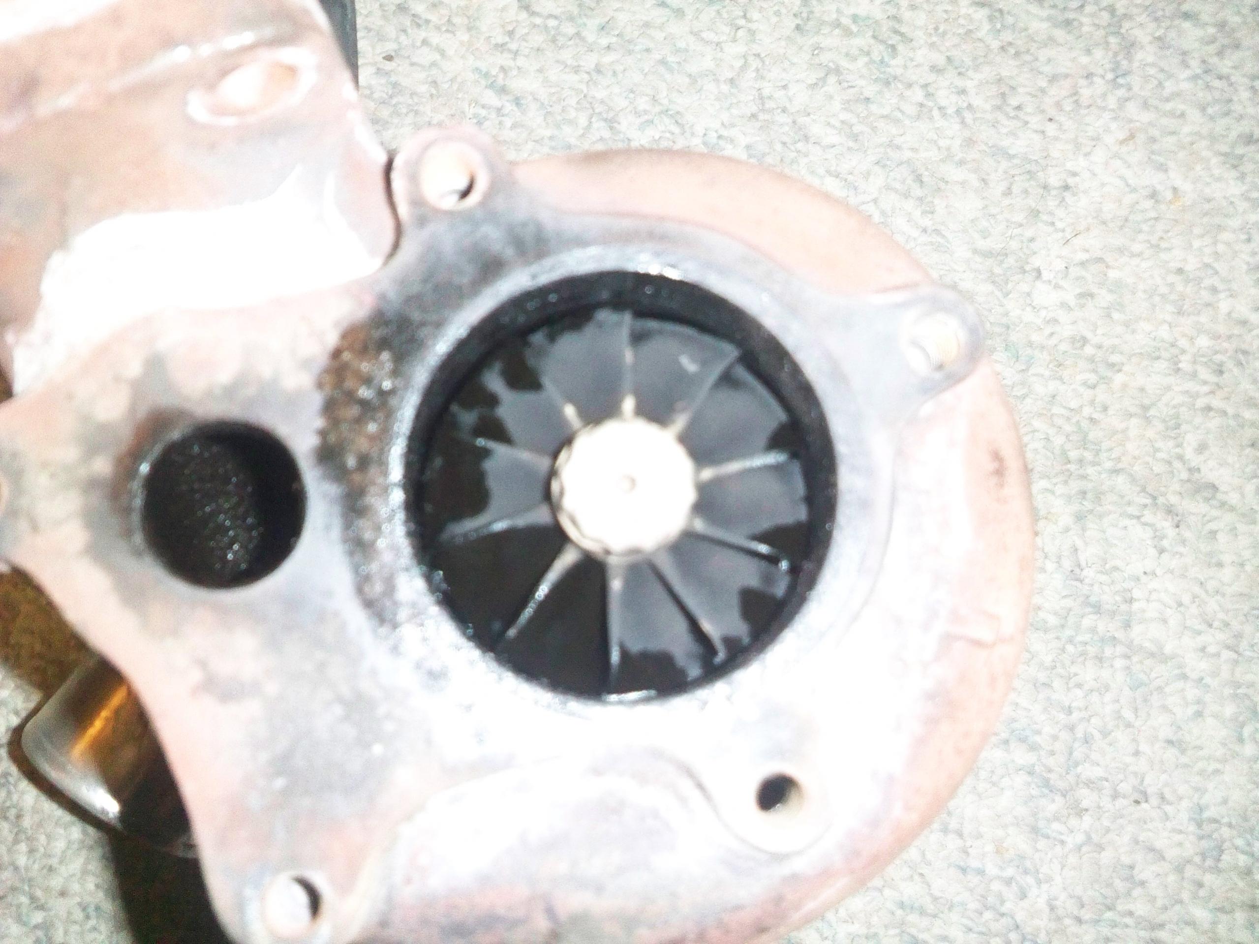 That turbo looks like it has blown seals. Exhaust wheel is wet...but if you need a t3 turbo manifold, I have one. Ramhorn style made by Punishment Racing.