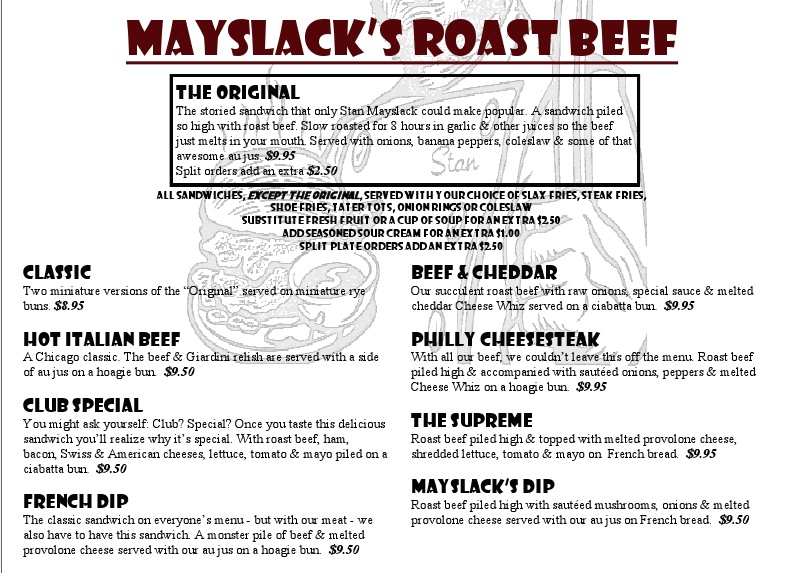 Oh man oh man, for years I've been going to mayslack's and getting their epic veggie burgers...I may have to switch it up and try one of their famous RB sandos this time...but which do I do? There's so many choices: