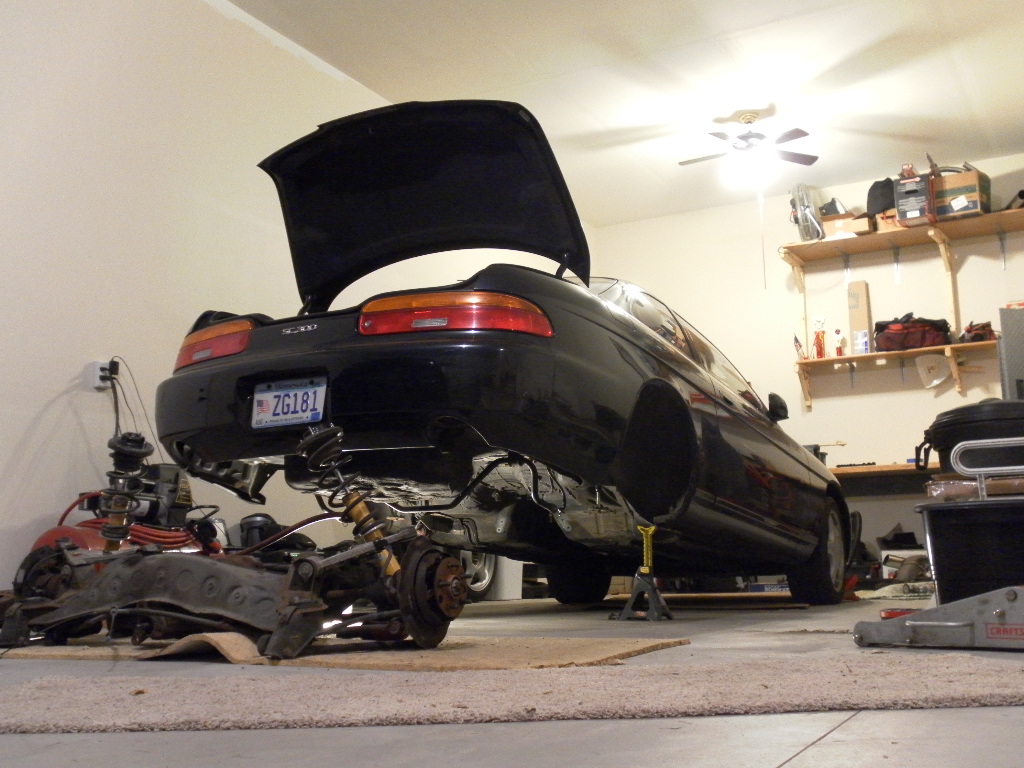 Little bit more done today. Got all connections/etc. disconnected so the rear subframe is completely out. Driveshaft removed. Mid portion of exhaust removed. Rear ABS sensor wiring removed (For good). Muffler heat shields removed. Just lots of little misc crap removed basically.