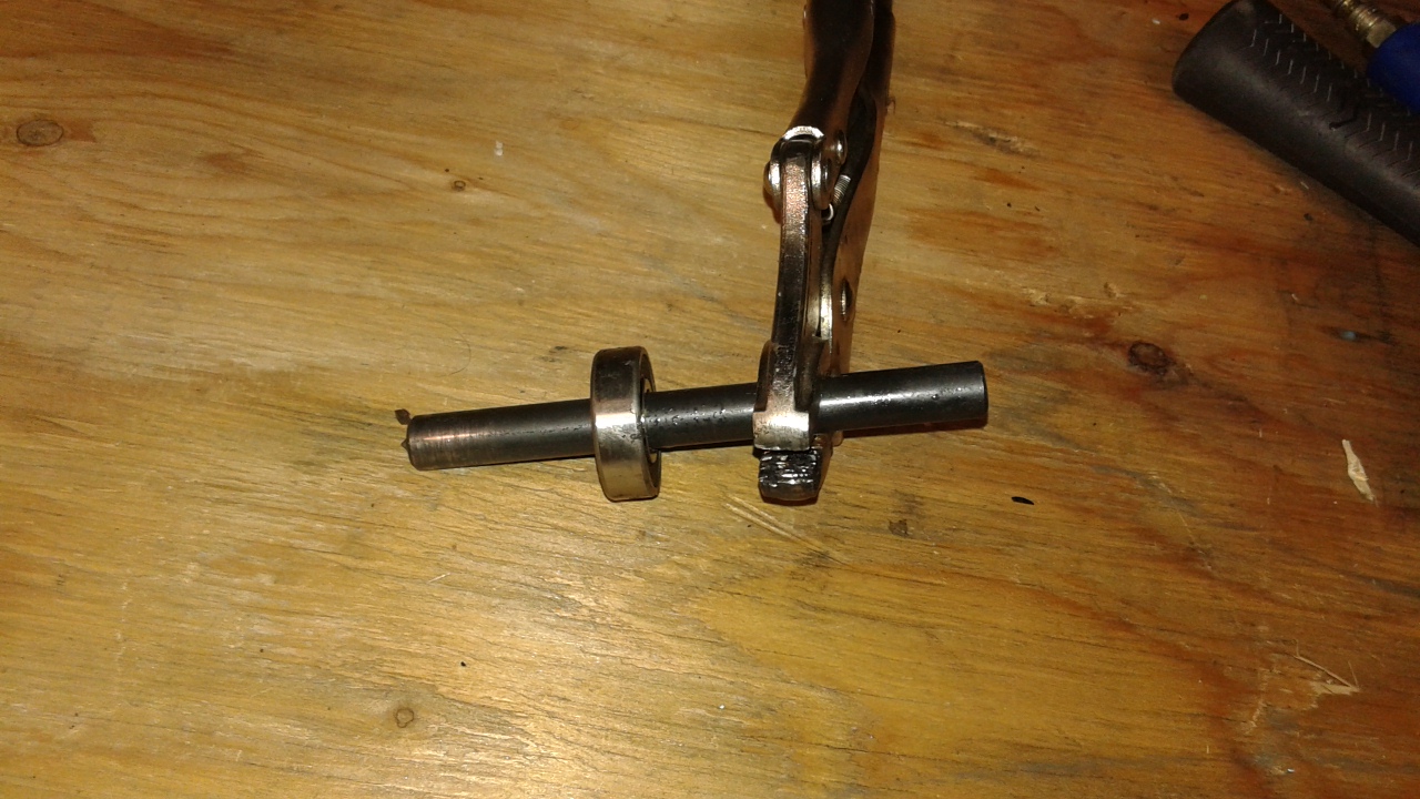 - Shifter arrangement finalized. Made some spacers to replace the stack of washers. Shifter ends up 31 5/8" back from the block.