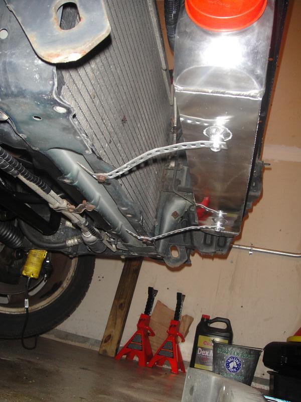 So... dug in the trash can where I've been putting everything I've ripped out of the car. Found some left over steel strapping from the ghetto bass system the original owner had installed, which I ripped out. Dug in my can of misc bolts and found 2 small matching bolts that threaded right into the chassis. Can't say I'm a huge fan of using this strapping stuff as it isn't the cleanest looking way to mount stuff, but all I needed was something to prevent swaying and it really worked perfect in this case. Pretty happy with how it turned out in the end.