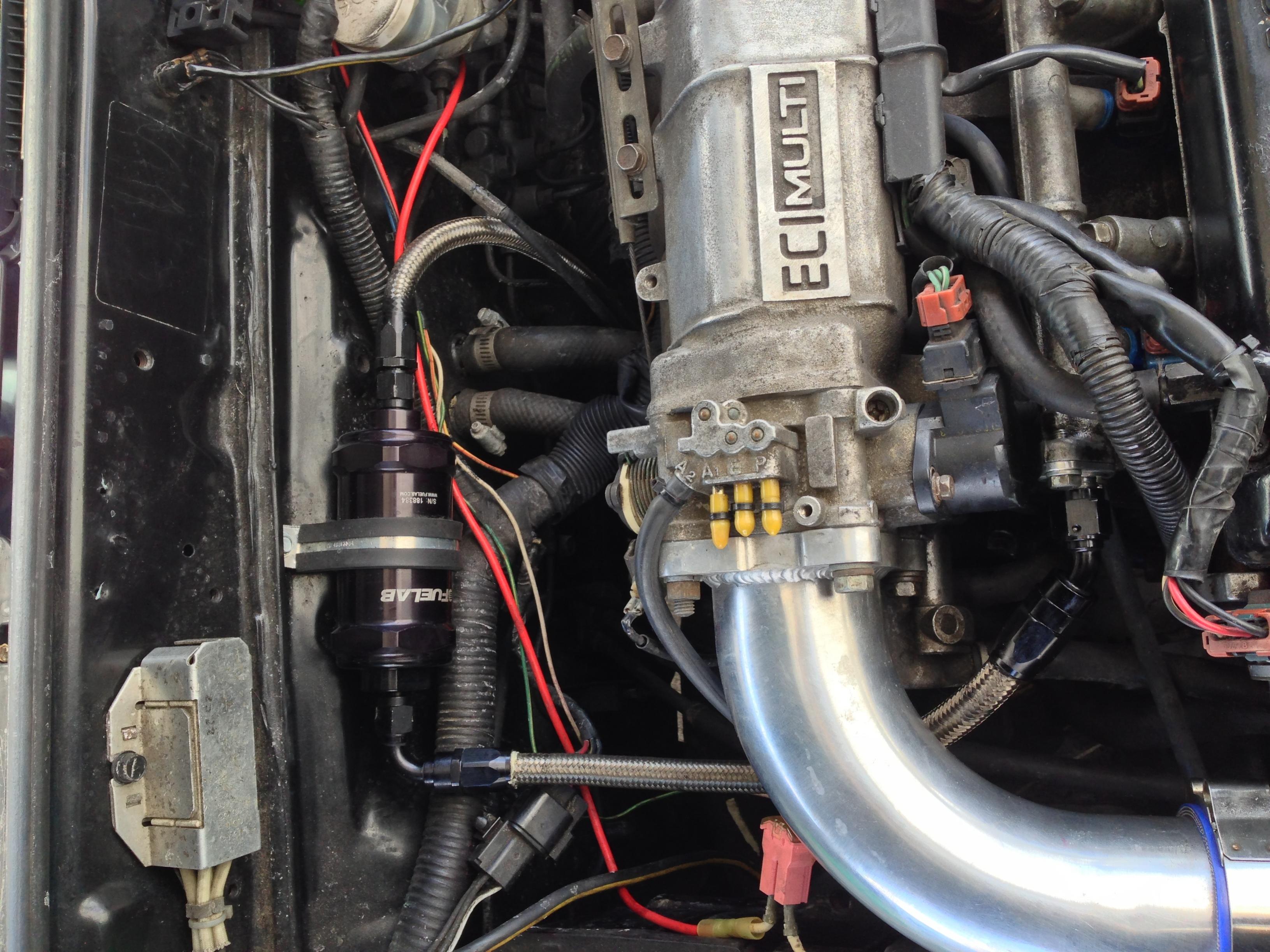 Installed braided stainless fuel line from the tank to the rail with -6an fittings and a fuelab filter today. Ill get more pics up later.