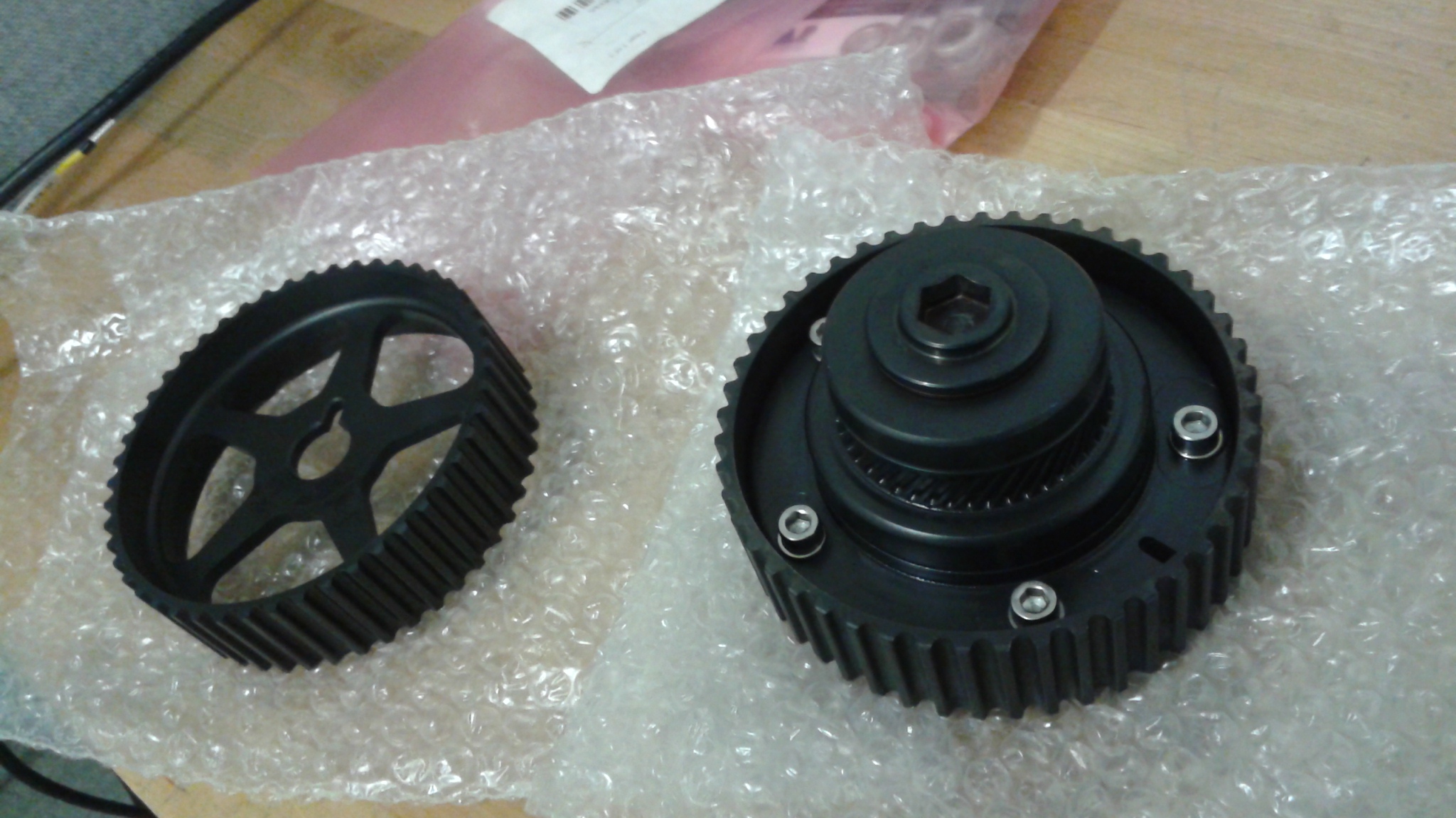 Well I think I did time this all pretty well. So I'm starting to get some more parts back that I had purchased in preparation for the new motor. I just got my stock cam gears back from PHR. They rebuilt the VVTi cam gear with all new seals and nice SS hardware, and they did a black oxide coating on both cam gears as well. Nice and clean looking!