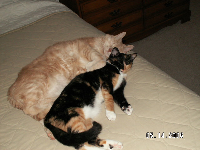 I just have to share a couple recent pictures. It's amazing how well the two cats have gotten along!