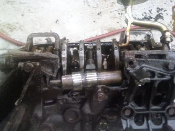 When the rear of the block broke out, it broke the balance shaft which caused the gear to lock up and strip off the teeth on the timing belt.. whihc bent some valves... :l