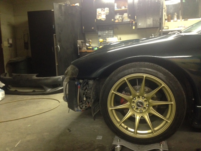 And this is what the car was sitting like when i was working on getting some 2ga's headlights and shaving the front bumper